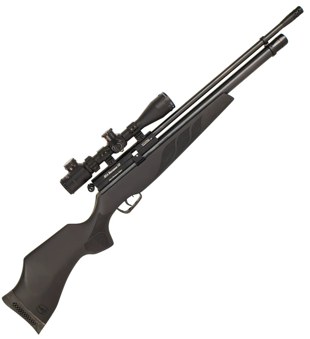 La prestigiosa marca BSA lanza al mercado la carabina de aire pre-comprimido Buccaneer SE Madera. Consta de una culata de fibra sintética y un cañón flotante de acero estriado. Con una potencia de 24 Julios alcanza una velocidad de 305 m/s en 4,5 mm y de 220 m/s en 5,5 mm. Incluye Raíl de 11 mm para instalar monturas ópticas.