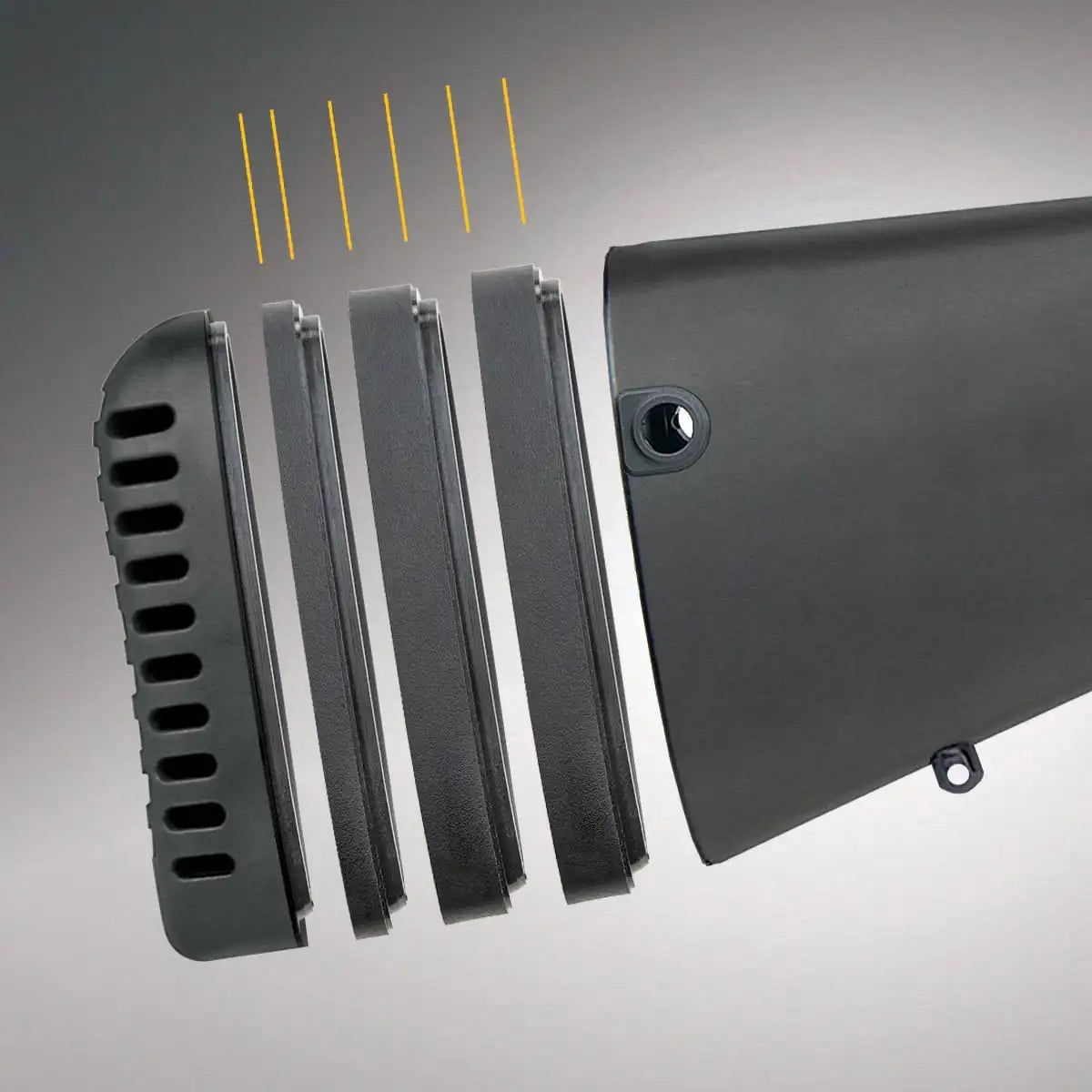 Un puerto de carga agrandado y biselado para facilitar la carga; cuenta con un seguidor anodizado de color naranja brillante y un elevador alargado y sin pinzamientos.