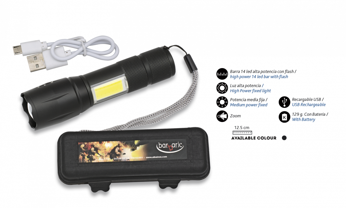 LINTERNA LED RECARGABLE BARBARIC CON BARRA DE 14 LEDS Y LUZ FLASH MUY POTENTE CON CABLE USB