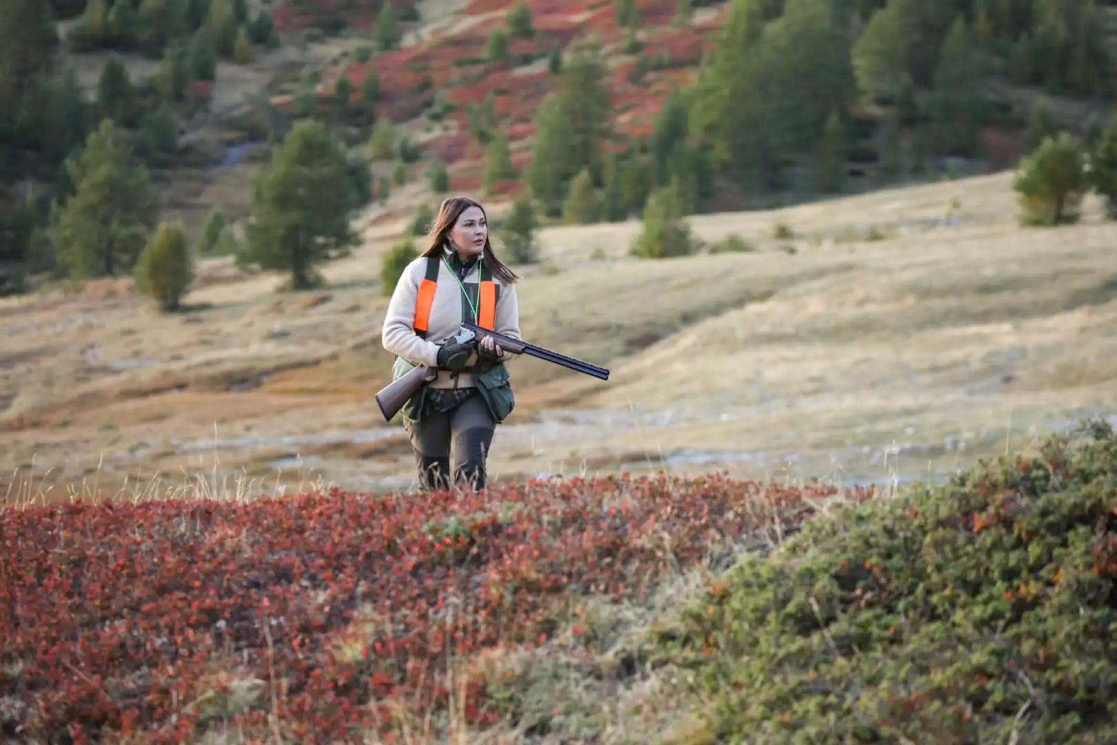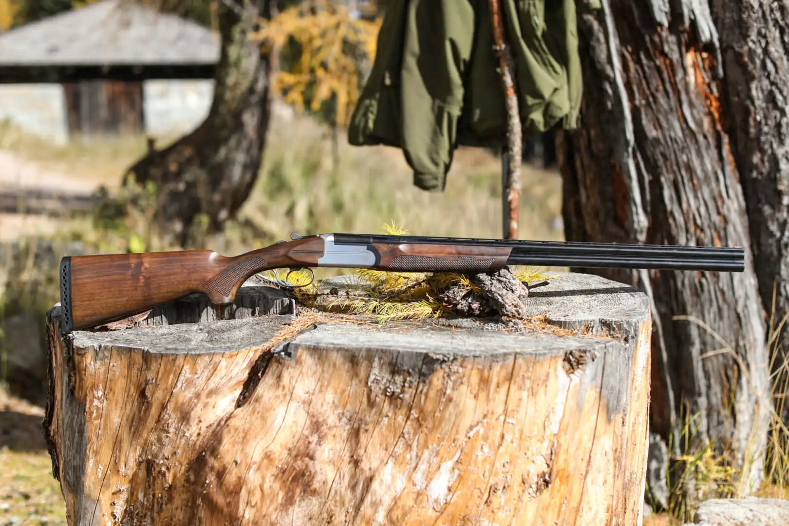 Las maderas están elaboradas en nogal seleccionado acabado al aceite, con picado 3D que garantiza un agarre firme incluso en condiciones adversas. El conjunto se completa con un monogatillo selectivo, seguro integrado y expulsores automáticos, lo que permite una utilización rápida y segura durante la acción de caza.
