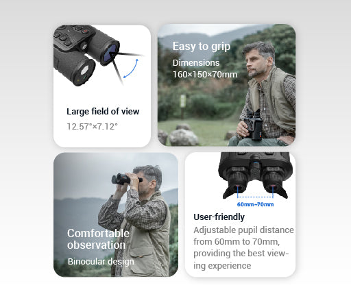 En mañanas, tardes o noches poco iluminadas, siempre que haya un poco de luz de luna, puede proporcionar a los usuarios un campo de visión claro y ayudar en la observación discreta para no dejar ningún lugar a las presas donde esconderse.