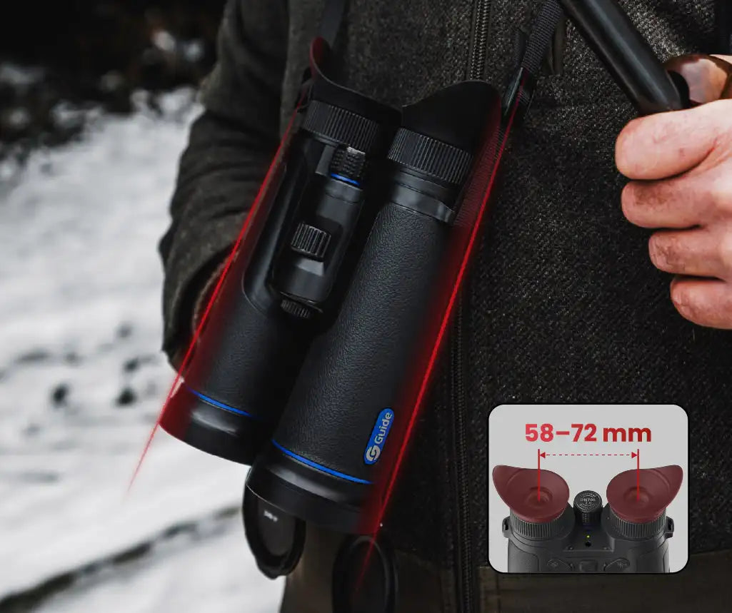 El nuevo diseño del DN 2.0 combina una estética refinada con detalles ergonómicos. Su cuerpo delgado y ligero garantiza un agarre cómodo y un manejo mejorado. La distancia interpupilar ajustable (58–72 mm) y la máscara ocular ayudan a reducir la fatiga visual durante periodos prolongados de observación.