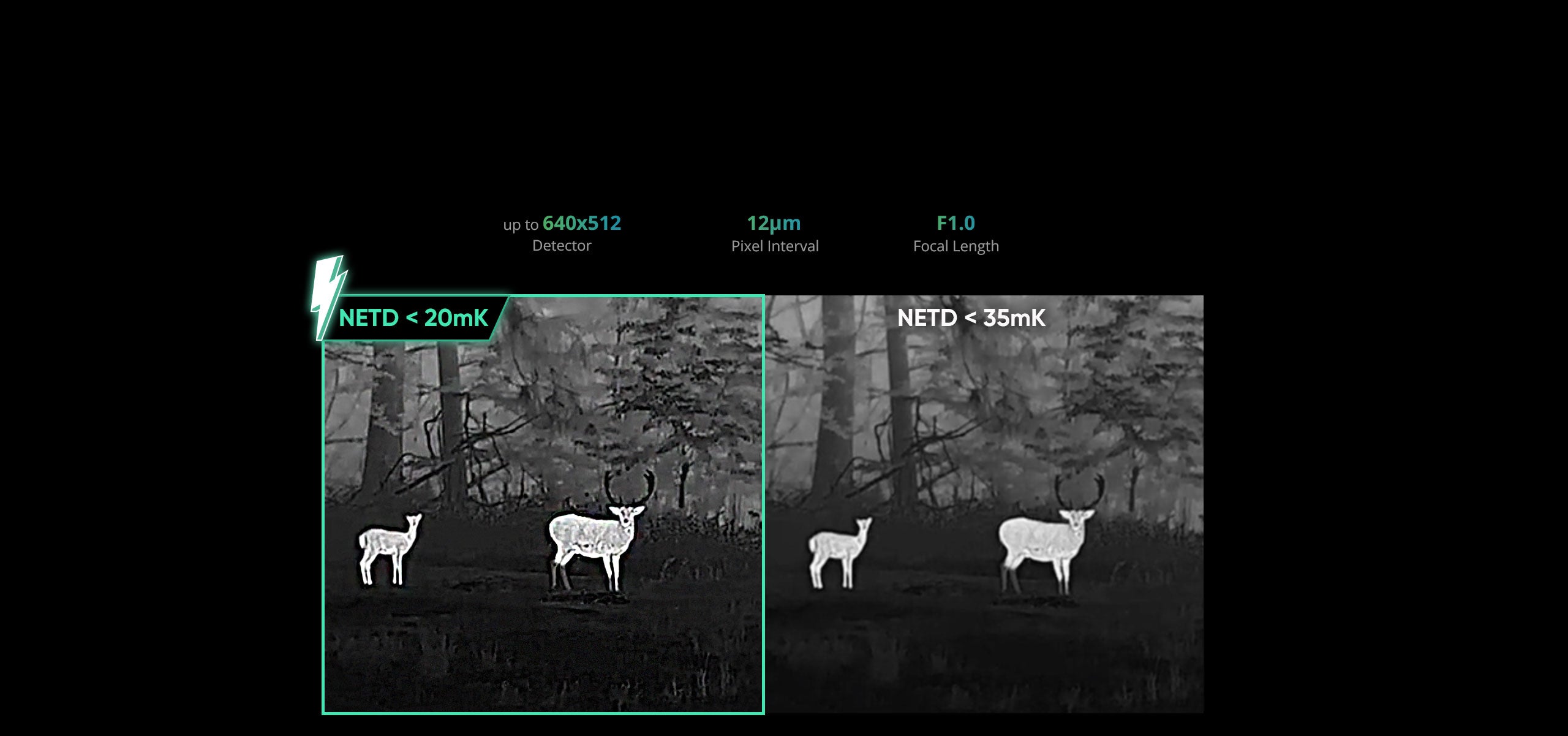 Con un detector de sensibilidad térmica extremadamente alta (NETD<20mK) que combina una potente cámara térmica de hasta 640x512 @12μm @ F1.0, garantiza imágenes informativas y una capacidad de identificación mejorada incluso bajo las más mínimas diferencias de temperatura.