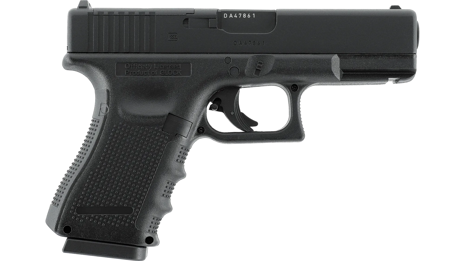 La Umarex Glock 19 Gen4 MOS (5.8423) es una pistola de aire comprimido CO₂ que replica fielmente el icónico modelo Glock 19, incorporando además el sistema MOS (Modular Optic System) que permite montar ópticas tipo red dot, algo poco habitual en este tipo de réplicas.