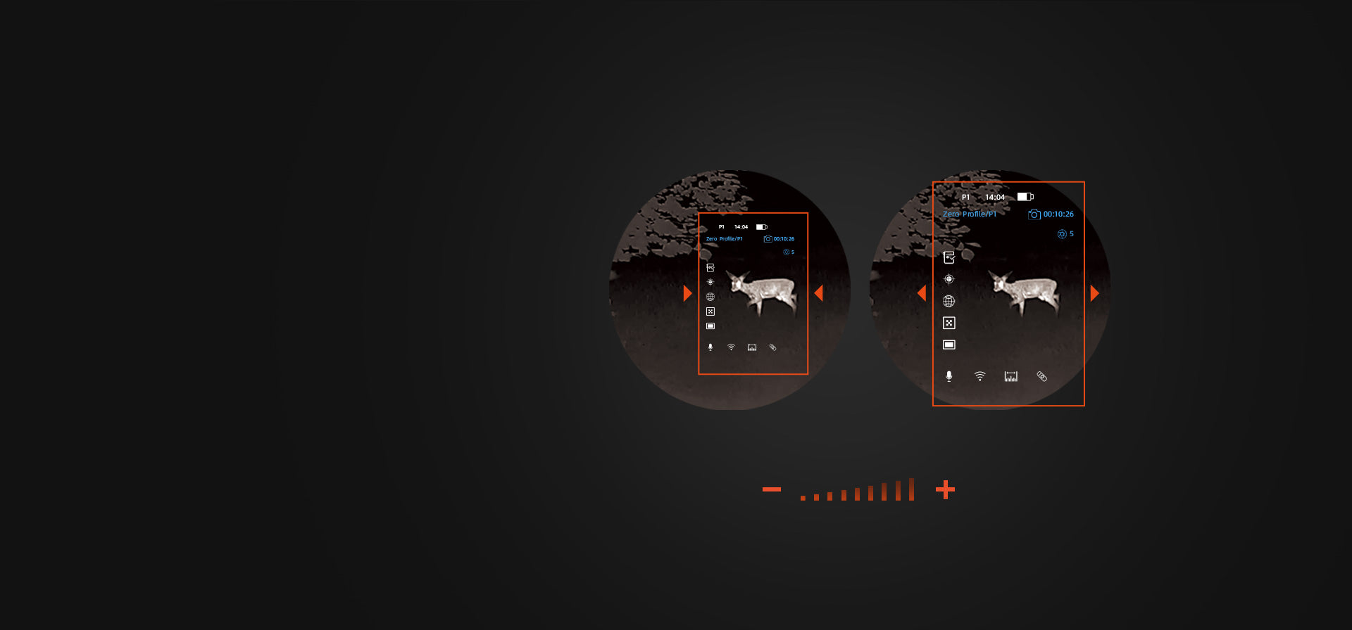 The new responsive UI design allows free adjustments and operation of all elements in view. The user interface will never be affected after Hunt is installed and integrated into any type of daytime optics, providing the best user experiences without compromise.