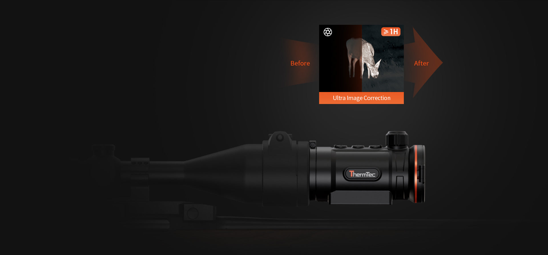Thanks to its unique thermal image processing algorithm, Hunt frees the hunter from frequent image correction when aiming: it maintains image stability for at least 1 hour without interruption after each correction. Allows hunters a more relaxed hunting experience.