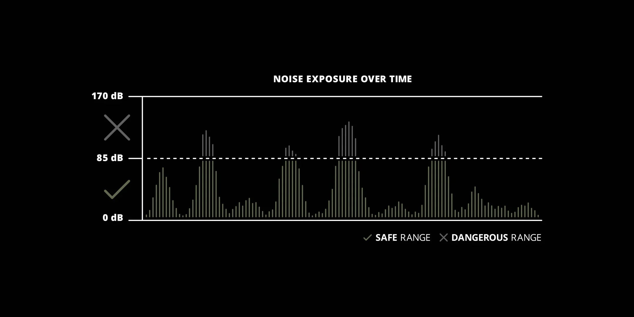 La mayoría de los disparos registran entre 150 y 170 decibelios. A esos niveles, pueden producirse daños auditivos rápidamente. Combata esos peligrosos niveles de ruido y dispare con seguridad durante todo el día.