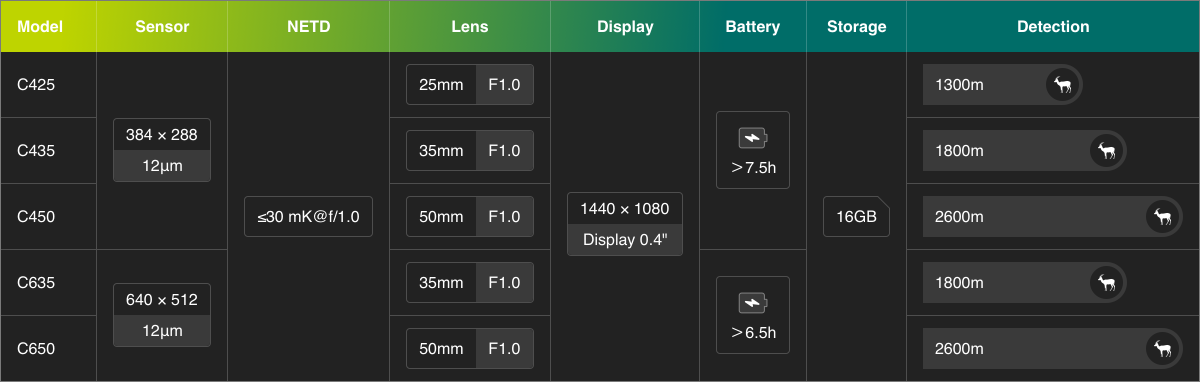 All models use a 12μm detector, with a resolution of up to 640×512, detector sensitivity <30mk, even in heavy rain, fog or cold and harsh environments, it can perfectly present the details, clearly observe the details of the objective characteristics.