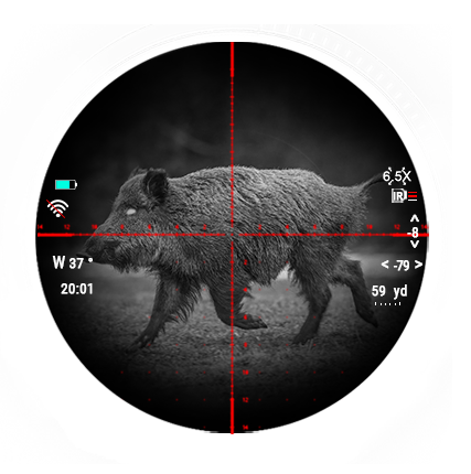 The round screen, which conforms to the structure of the human eye, along with a centered, full-screen reticle, offers a hunting experience similar to that of traditional white light scopes.