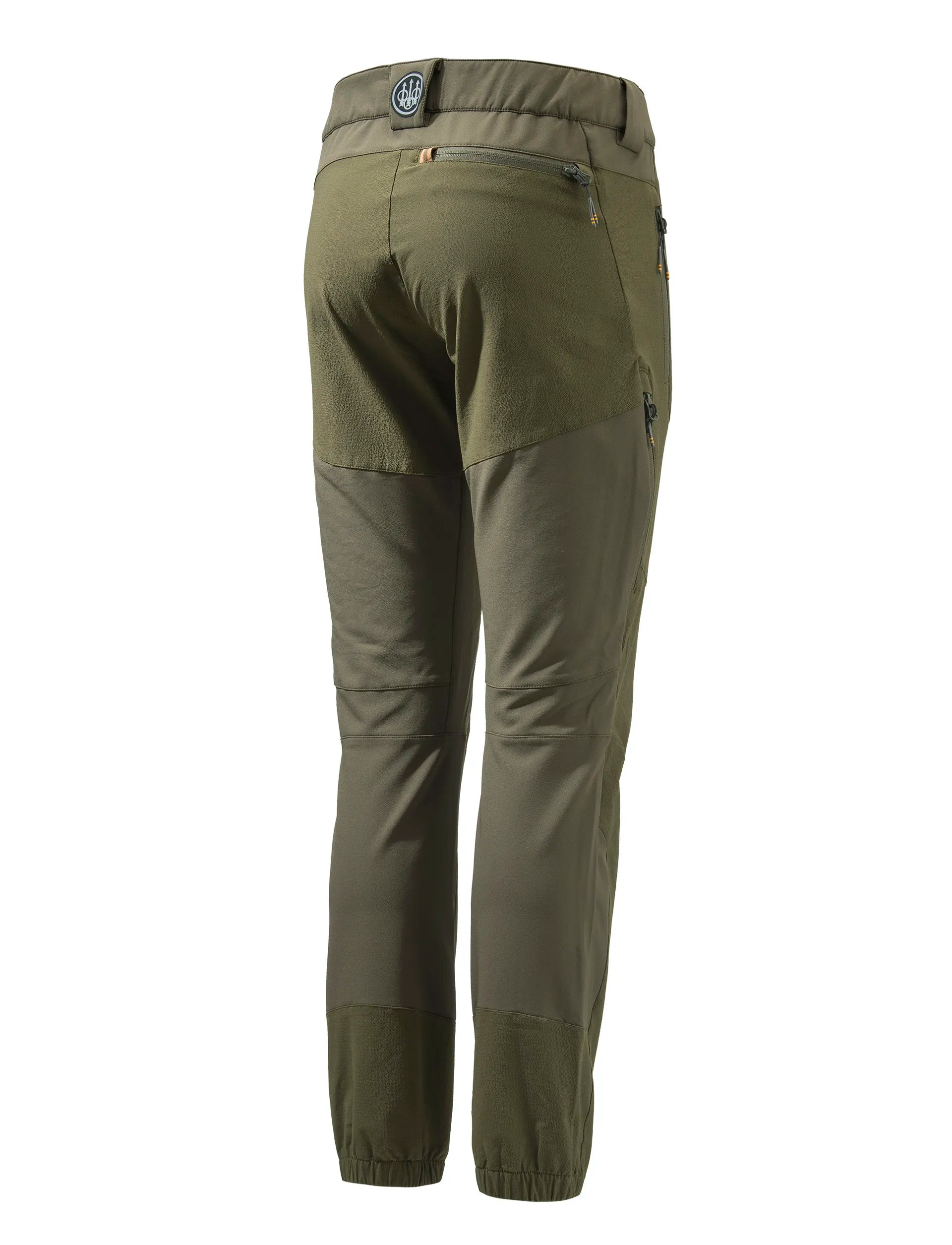 El material principal es 4 way stretch con un buen nivel de resistencia a la abrasión. Las inserciones de materiales resistentes a la abrasión en las rodillas y en la zona de la espalda aumentan la durabilidad del pantalón. Para una mayor comodidad, el pantalón tiene una cintura ergonómica con un alto soporte lumbar. La elasticidad, el silencio y la transpirabilidad son los elementos clave que garantizan el máximo rendimiento de las prendas.