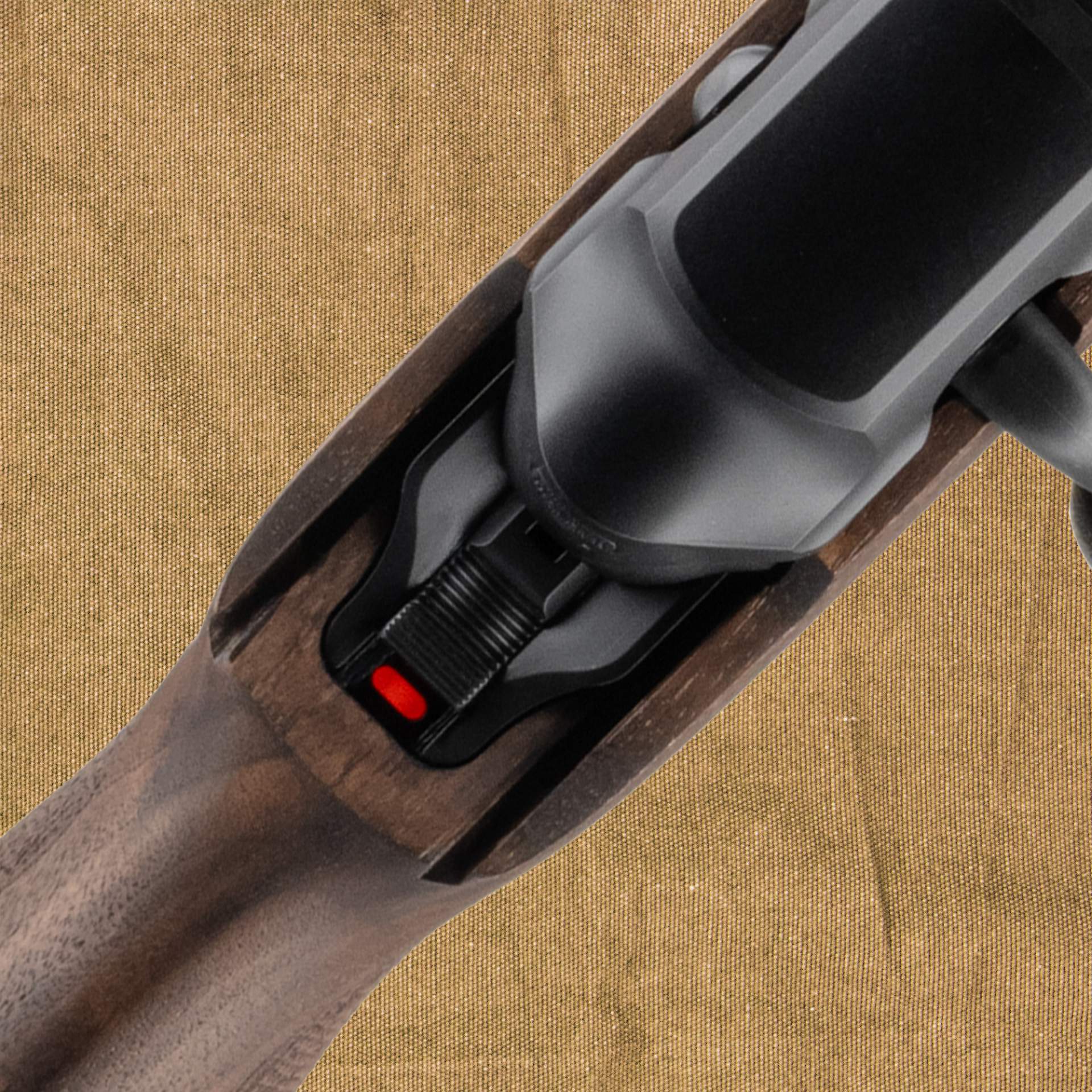 La empuñadura recta del cerrojo está situada ergonómicamente por encima del gatillo para una repetición más rápida sin florituras. El seguro de dos posiciones actúa directamente sobre el percutor y puede controlarse fácilmente con la mano. Construido para un funcionamiento intuitivo y silencioso. El seguro permite cargar y descargar en MODO SEGURO.