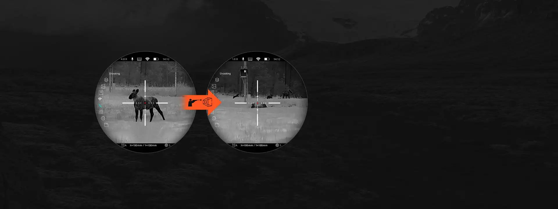 Cambio automático al aumento base para obtener el campo de visión más amplio después de un disparo con gran aumento para mantener su objetivo firmemente a la vista. Se acabaron los cambios manuales que le ralentizarán; la Oryx-L le garantiza que se mantendrá al tanto de la acción.