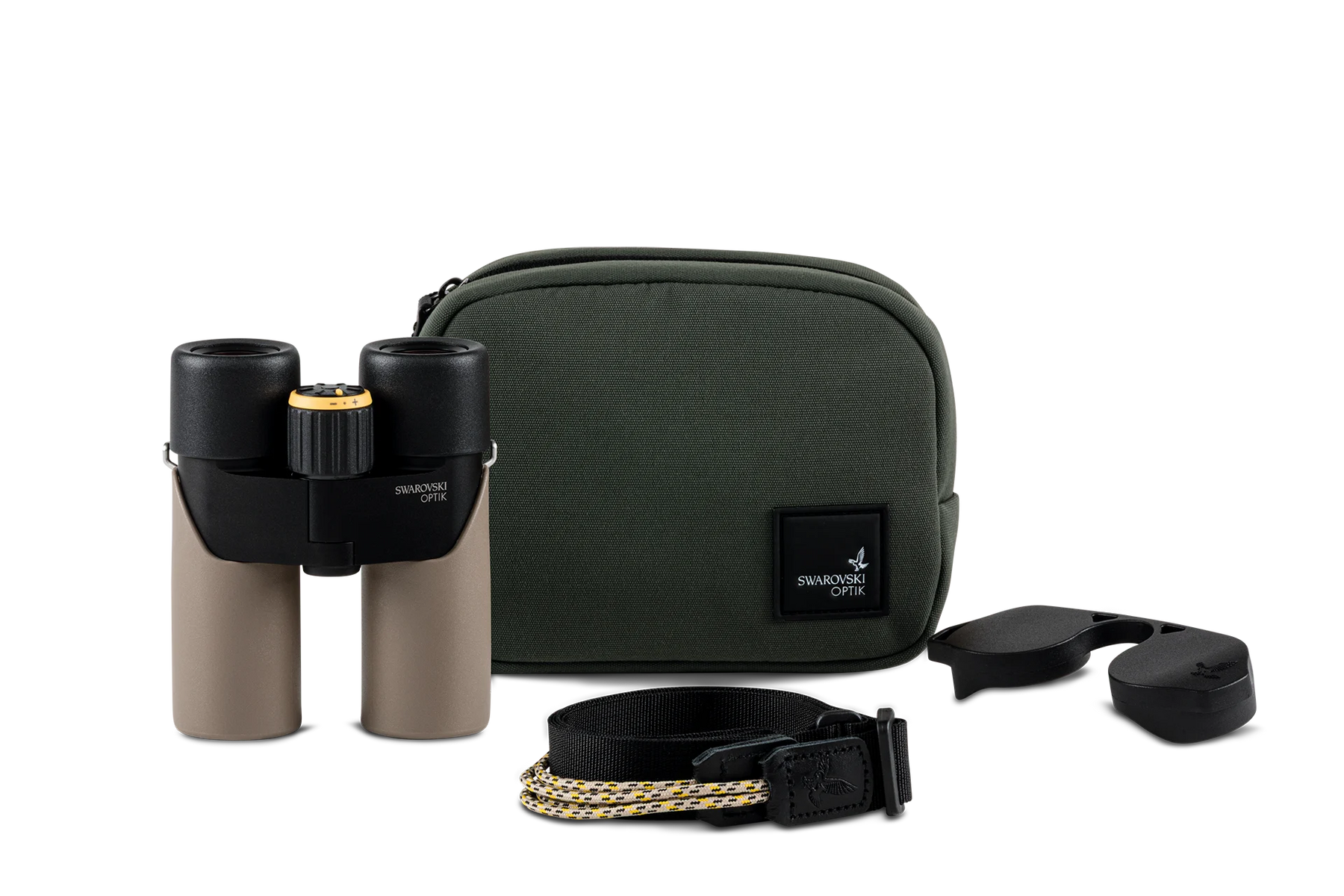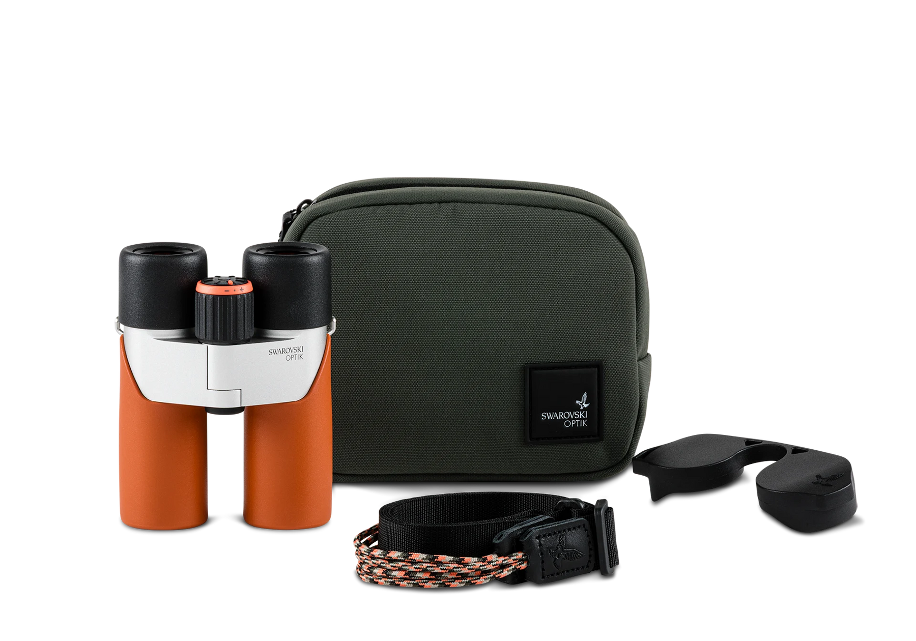 Conjunto de accesorios funcionales: Funda, correa de transporte, así como tapa para el objetivo y el ocular
