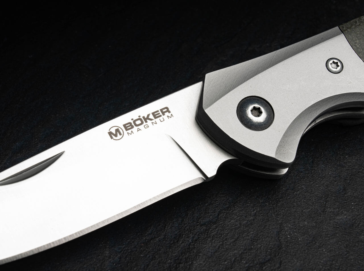 Técnicamente sencilla, excelente en material y acabado, excelente en la mano y agradable en apariencia: estos son los sencillos pero difíciles requisitos de una buena navaja de bolsillo. La Magnum Nice cumple todos estos requisitos sin esfuerzo y es una navaja fiable para el uso diario. La hoja satinada de 440A con afilado hueco se abre mediante una muesca de uña y se bloquea de forma segura mediante un robusto contracierre. La virola de acero inoxidable mate en combinación con las escamas del mango de Micarta verde oliva proporcionan la robustez necesaria y al mismo tiempo ponen un acento visual. Con práctico clip de transporte profundo (tip-up/r).