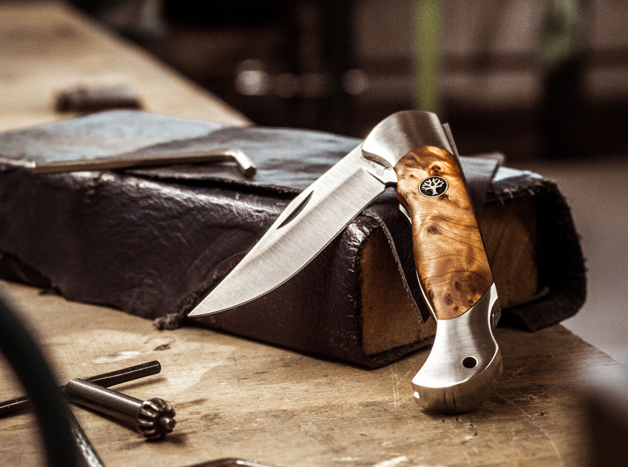 La hoja rectificada hueca de acero inoxidable N690 está forjada por Böhler y contribuye con su forma memorable a la incomparable apariencia de la Scout. Un Backlock clásico mantiene la hoja abierta de forma segura. Cuando se abre el cuchillo, el lomo se bloquea en una muesca en la parte posterior de la hoja. Para cerrar el cuchillo, empuje hacia abajo la parte expuesta del lomo. La armónica impresión general de este clásico se completa con las escamas del mango de agradable forma hechas de madera de Thuja certificada importada de tonos cálidos.