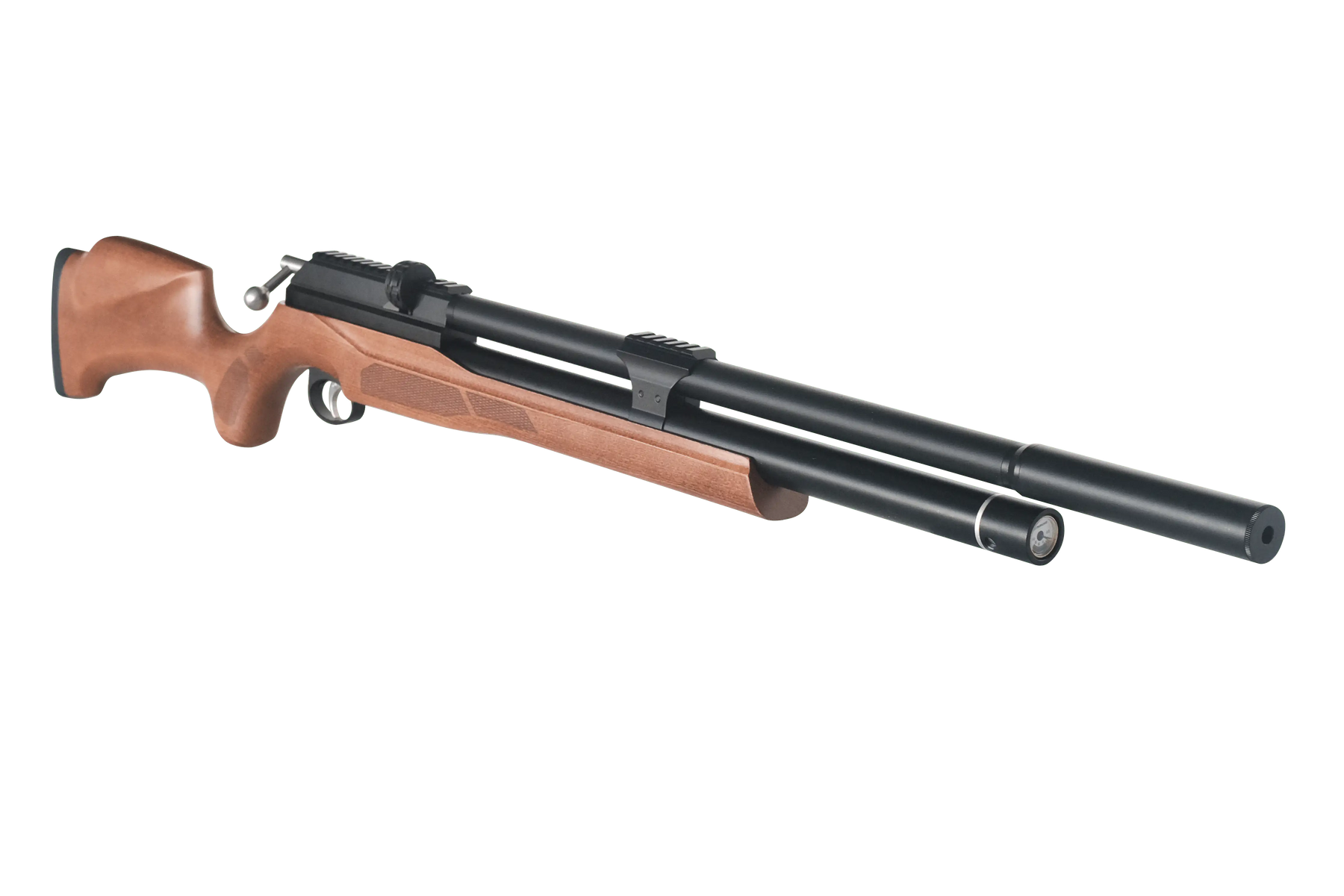 La Artemis PCP M25 es una carabina preparada para todo tipo de situaciones y necesidades del tirador, por ello tiene integrado un raíl Picatinny en la parte superior para acoplar algún láser o visor y uno inferior para poder insertar un bípode. Además, incorpora una culata sintética extraíble de estilo AR-15 que reducirá el retroceso y mejorará la precisión del tiro.