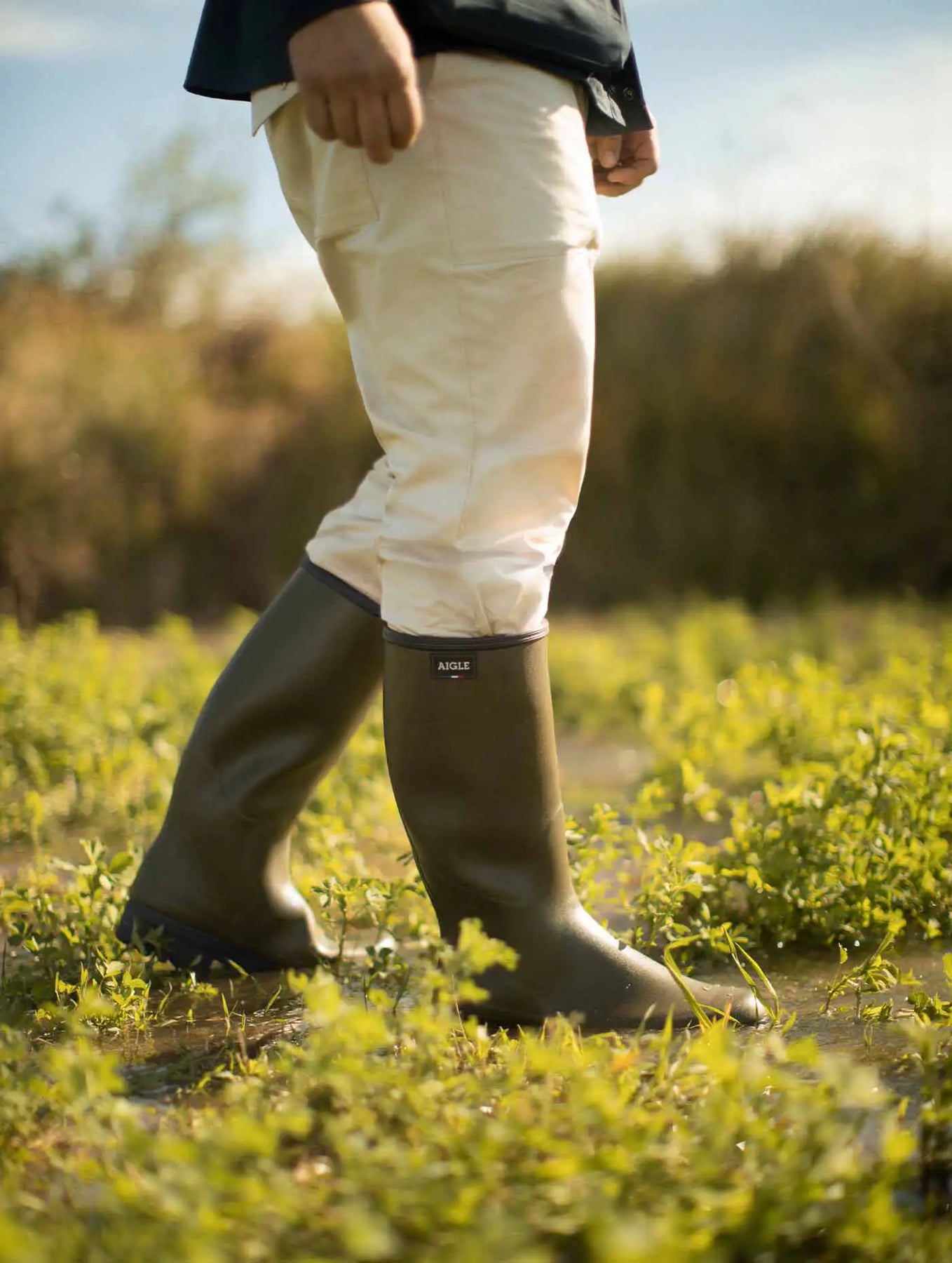 De arriba abajo, estas botas se fabrican íntegramente en Francia, en la única fábrica de botas de caucho natural del país. Este compromiso con su lugar de fabricación contribuye a preservar un saber hacer único.