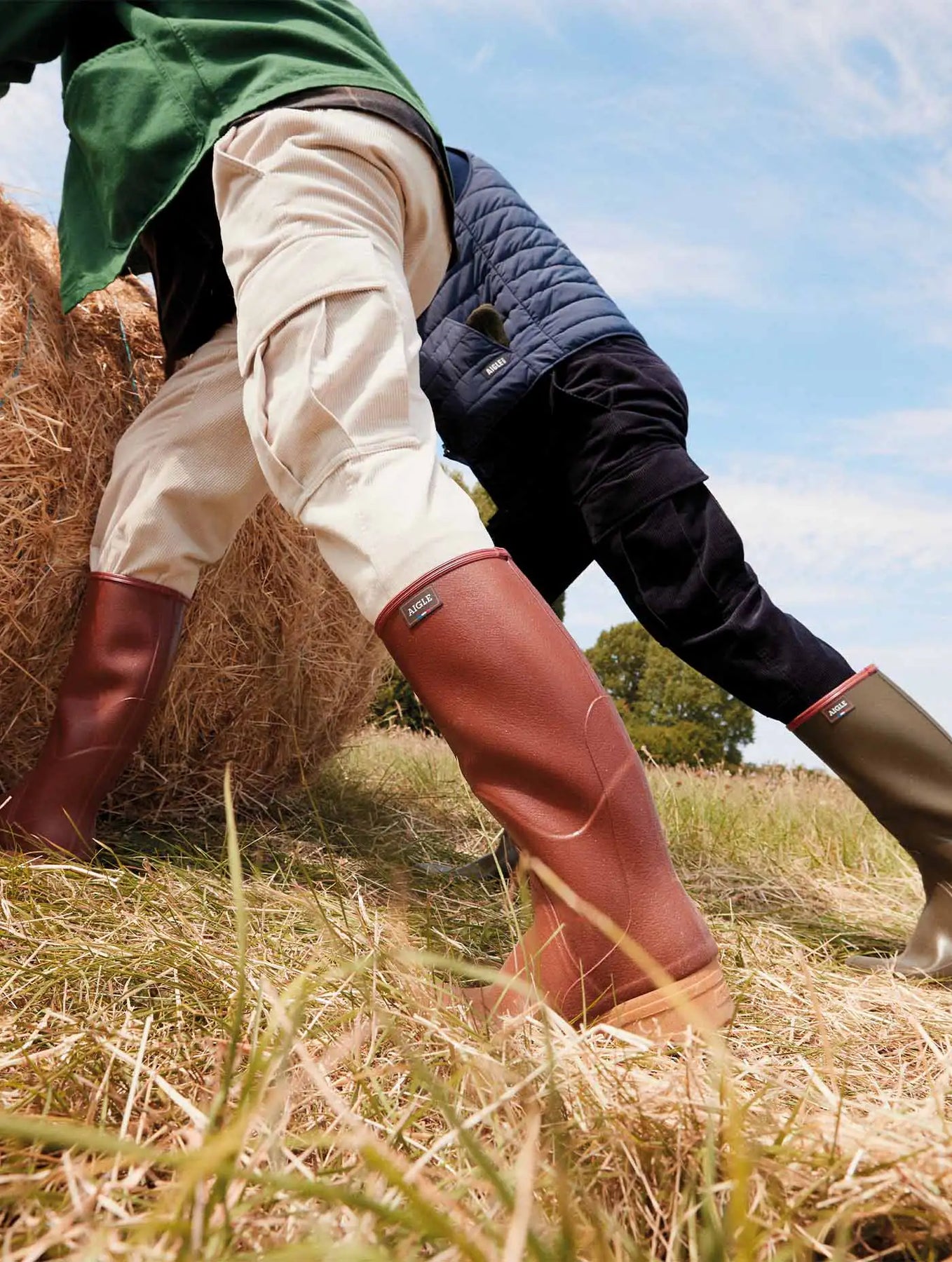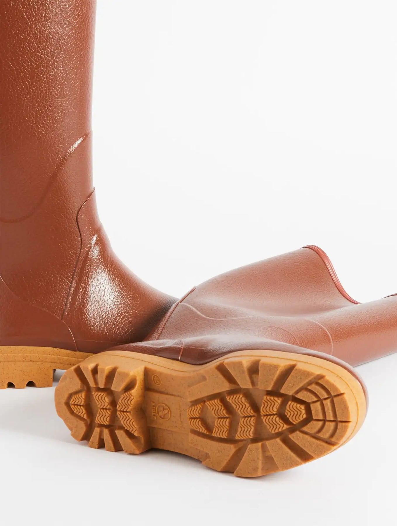 De arriba abajo, estas botas se fabrican íntegramente en Francia, en la única fábrica de botas de caucho natural del país. Este compromiso con su lugar de fabricación contribuye a preservar un saber hacer único.