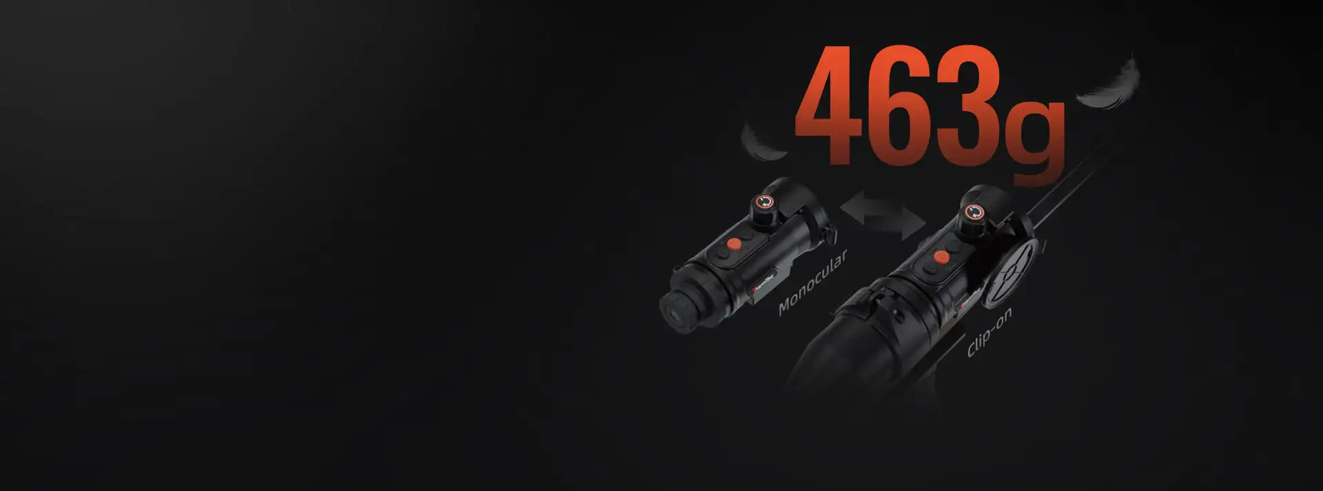 Su diseño 2-en-1 clip-on y monocular, la construcción ultraligera de 463 g y el sistema de calibración AI sin obturación permiten un uso ágil, una transición rápida entre observación y disparo, y una precisión óptima en disparos a larga distancia.