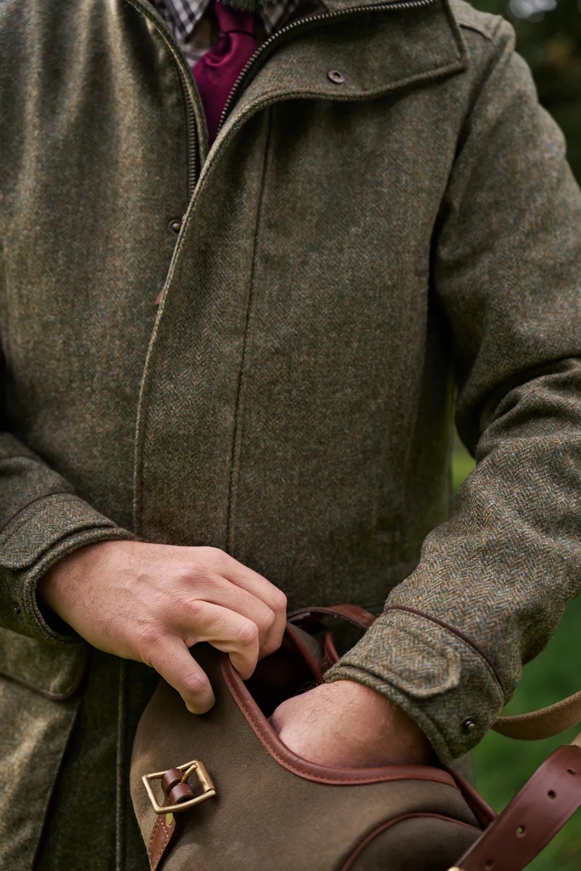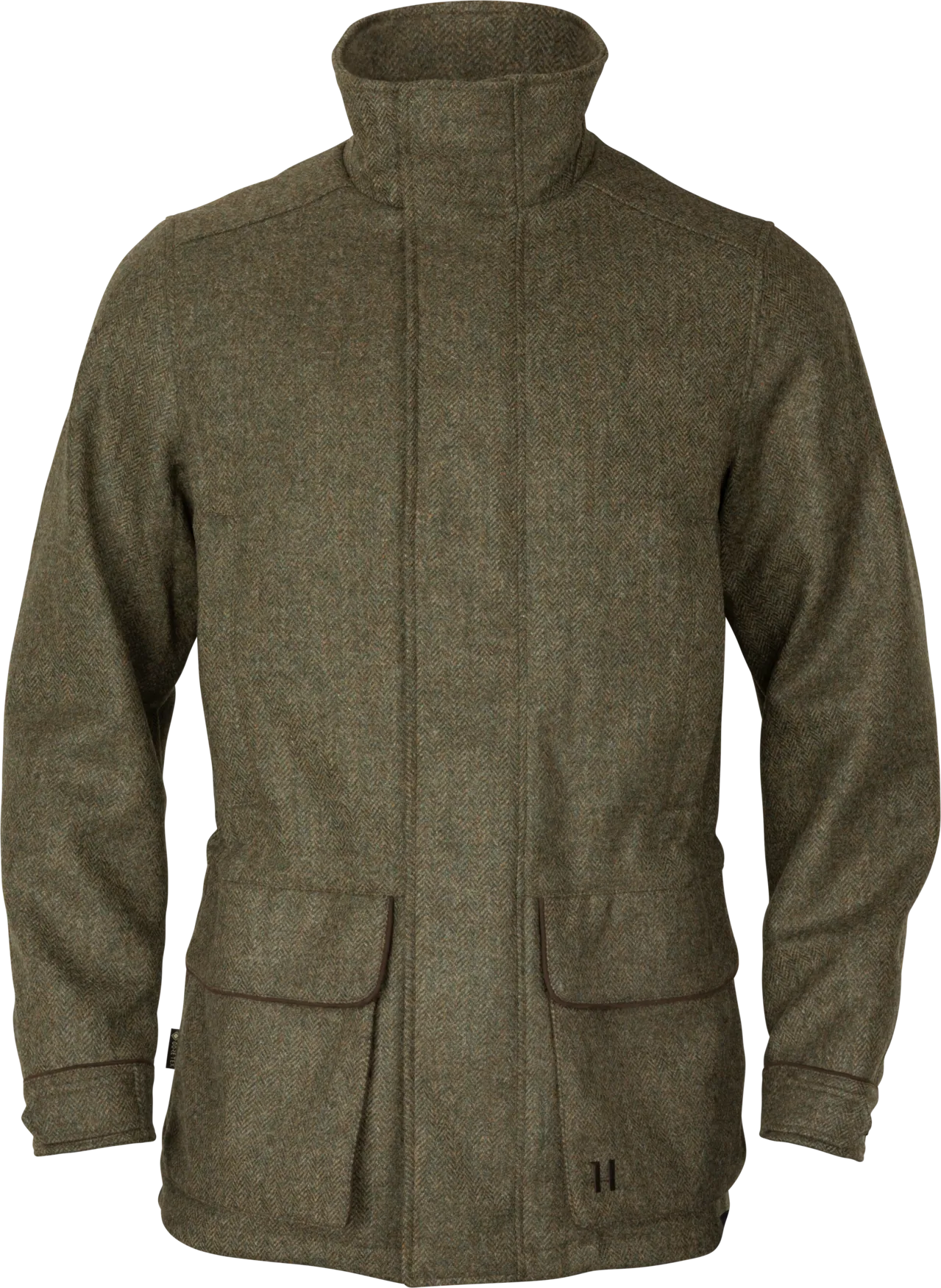 Fabricada en tweed de lana 100%, ofrece una estética tradicional con patrón clásico, mientras que su membrana GORE-TEX garantiza protección total frente al viento y la lluvia sin renunciar a la transpirabilidad.