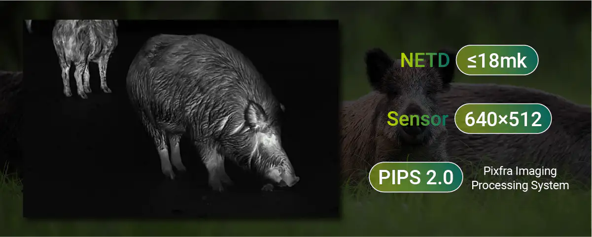 Experimente el poder transformador de PIPS 2.0, un algoritmo que silencia el ruido ambiental y amplifica el contraste y la claridad de los detalles. Al perfeccionar la calidad de imagen, eliminar el retardo y acentuar los detalles del objetivo, PIPS 2.0 eleva la precisión de las imágenes térmicas a nuevas cotas.