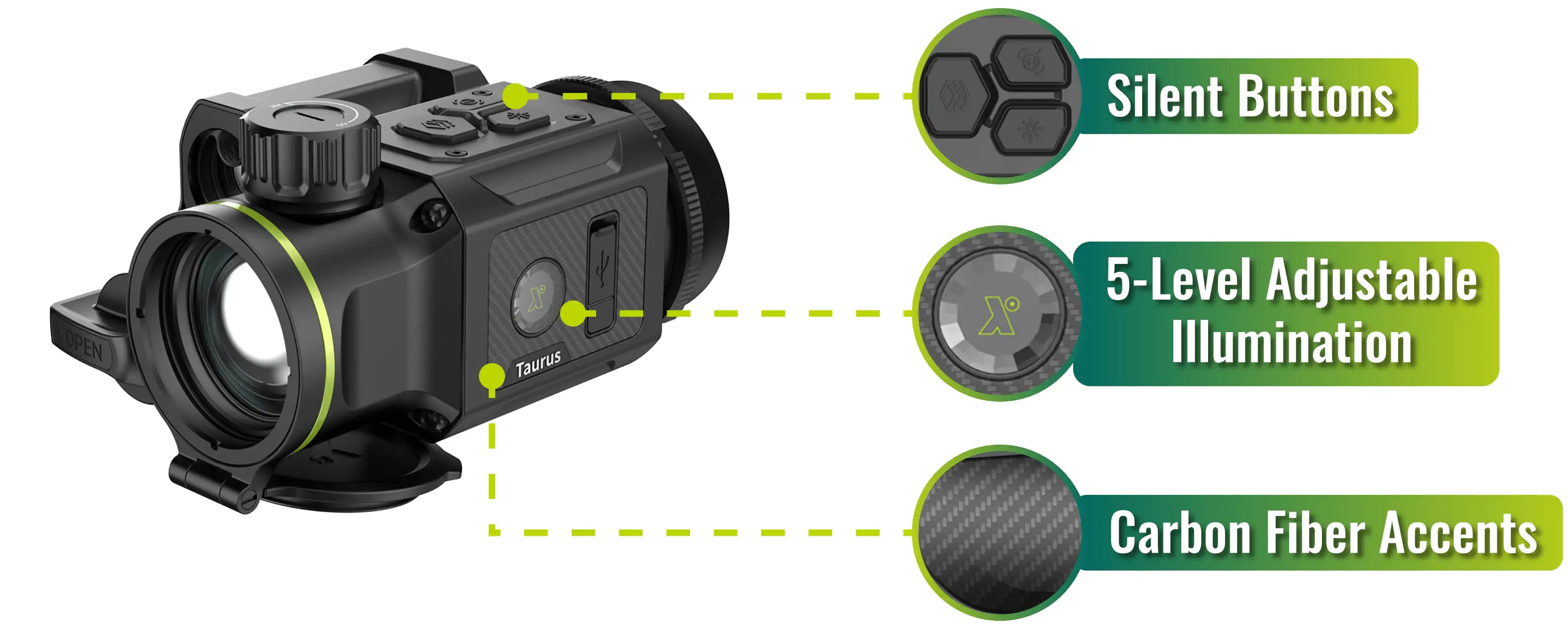 Admite aumentos de hasta 10x, integrándose a la perfección con un amplio espectro de visores diurnos líderes del mercado. Taurus garantiza la compatibilidad con una amplia gama de configuraciones, atendiendo a las diversas preferencias y requisitos de los usuarios sin concesiones.