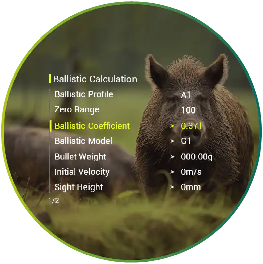 Интуитивно понятный встроенный баллистический калькулятор предоставит вам персонализированный опыт стрельбы, используя параметры пули, данные об окружающей среде и предпочтения пользователя, а также данные о расстоянии, собранные с помощью лазерного дальномера, для расчета оптимальной точки прицеливания и обеспечения большей точности при стрельбе на большие расстояния.