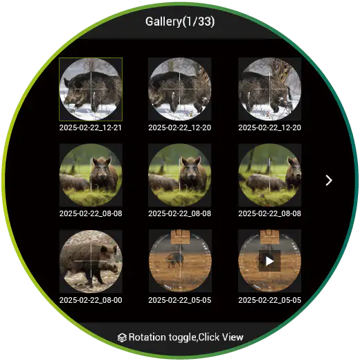 Встроенные функции видеозаписи (со звуком) и фотосъёмки позволят вам вновь пережить самые памятные моменты охоты и даже поделиться ими с друзьями. Изображения и видео сохраняются во встроенной памяти устройства объёмом 64 ГБ. Кроме того, благодаря новой встроенной галерее вы можете просматривать эти изображения прямо на экране прицела, находясь в полевых условиях, без необходимости переносить их на телефон или компьютер.